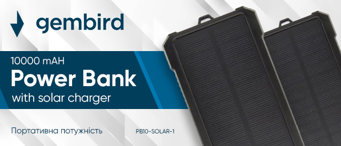 Портативна потужність - мобільний зарядний банк Gembird PB10-SOLAR-1 10000 mAh