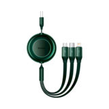 Кабель 3в1 USB 2.0 - 1.1 м Baseus (Lightning+MicroUSB+Type-C) 3.5A, CAMJ010006 Bright Mirror 2 Series Retractable Green