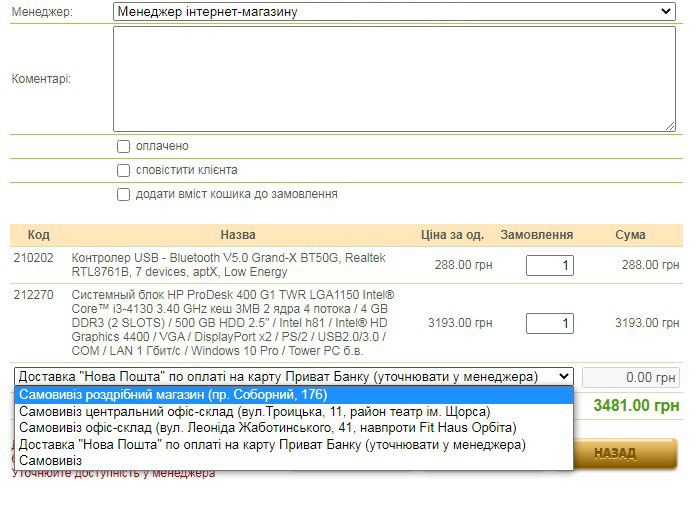 Також залишився спосіб: "Самовивіз", проте пізніше його буде перейменовано на спосіб: Інший |