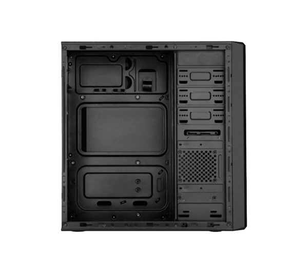 Гарна циркуляція повітря забезпечується вентиляційними отворами бічної й задньої панелей. Шасі виготовлено з GECC сталі завтовшки 0.5 мм і пофарбовані в чорний колір. Завдяки використанню високоміцної сталі корпус не гнеться й не гримить. Акуратна обробка країв не дасть поранитися у процесі встановлення комплектувань у корпус.