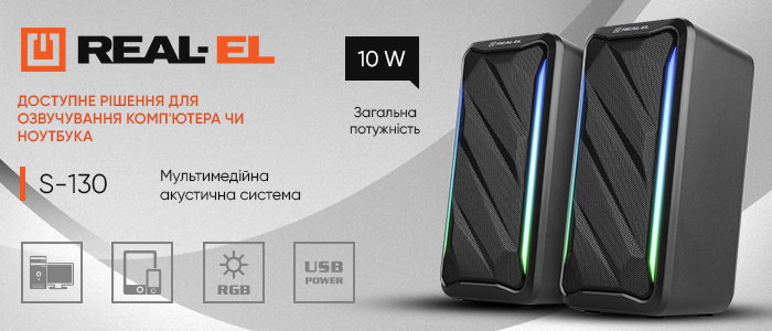 Доступне рішення для озвучування комп'ютера чи ноутбука - мультимедійна акустична система REAL-EL S-130