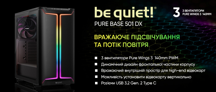 Сучасний корпус з вражаючим підсвічуванням - be quiet! PURE BASE 501 DX