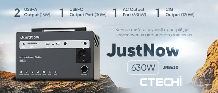 Компактний та зручний пристрій для забезпечення автономного живлення - CTECHi JustNow JNB630
