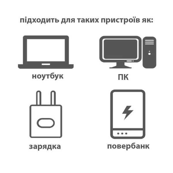 повербанка, ноутбука або ПК