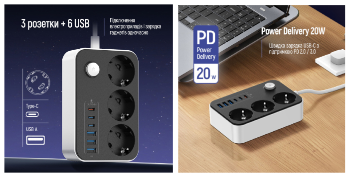 Фільтр підтримує популярні протоколи зарядки, зокрема Power Delivery, Apple Fast Charge, Samsung Charge та BC1.2, що гарантує високу сумісність і надійну роботу. Загальна USB-потужність становить 20 W з продуманим розподілом навантаження, що дозволяє стабільно заряджати кілька пристроїв одночасно.